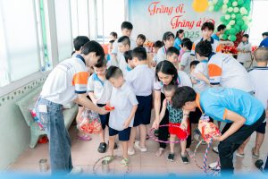 Không khí Trung thu ngập tràn niềm vui với những trò chơi dân gian, lồng đèn rực rỡ và những phần quà ý nghĩa được trao tận tay các em. Tiếng cười hồn nhiên, ánh mắt rạng rỡ của các em chính là món quà quý giá nhất